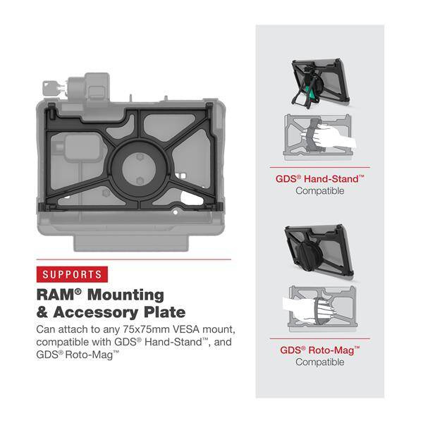 - Kompatibilní se základnami RAM® AMPS se 4 otvory a základnami VESA se vzorem 75 mm x 75 mm pro připojení ramene s dvojitou objímkou; technologie koule a objímky umožňuje téměř neomezenou nastavitelnost.